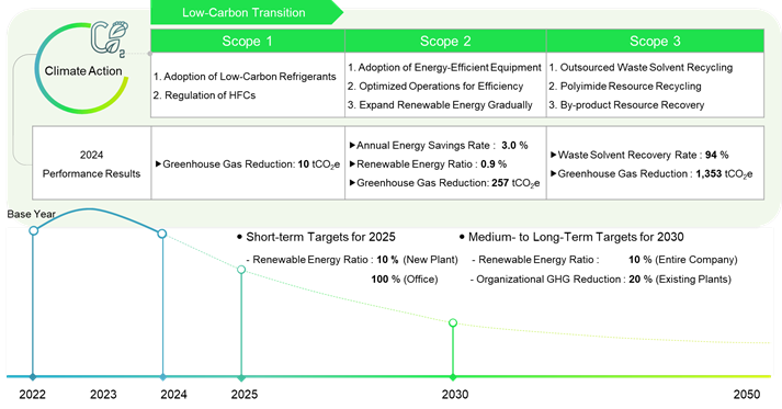 For more information, please refer to Daxin Materials‘ 2024 Sustainability Report: Section 4.1 Climate Action.