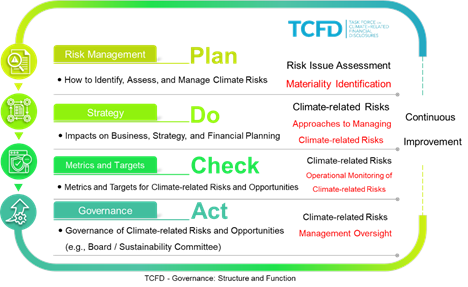 Daxin is fully aware of the impact and importance of climate change on sustainable operations. Therefore, the Sustainable Development Committee coordinates and promotes various action plans to comprehensively implement sustainable development. The Sustainable Development Committee evaluates environmental, social, and corporate governance issues related to operations, and refers to climate-related financial disclosures (Task Force on Climate-related Financial Disclosures, TCFD) to conduct "climate change risk and opportunity assessments." Based on these assessments, response plans are formulated and management targets are set. The progress of sustainability projects is reported to the Board of Directors annually. The Board supervises the implementation of these plans according to the reports and provides timely guidance and suggestions to strengthen the effectiveness of sustainability strategy execution.