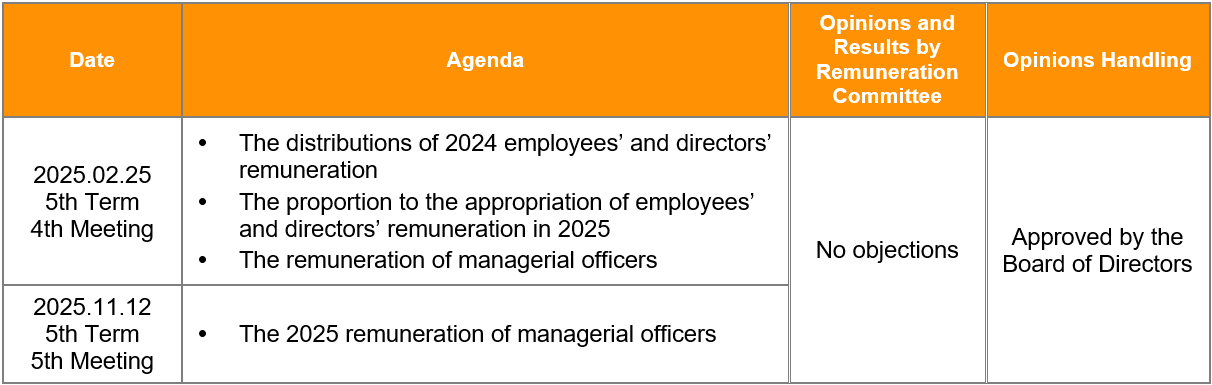 The Remuneration Committee members‘ professional qualifications and experience, as well as the results of the internal performance evaluations, please refer to the Board of Directors and the Annual Report.